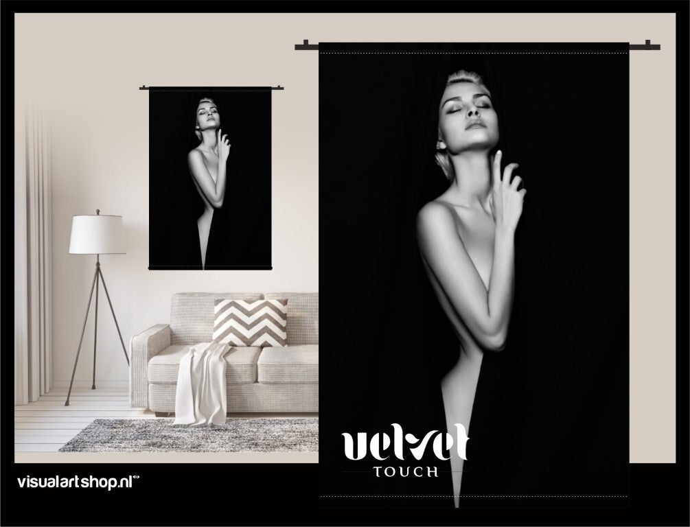 Een Velvet Touch wanddoek is dé trend van dit moment. Het straalt elegantie en luxe uit en geeft tegelijkertijd een warm en aangenaam gevoel in je interieur. Je ontvangt een complete set inclusief roedes.